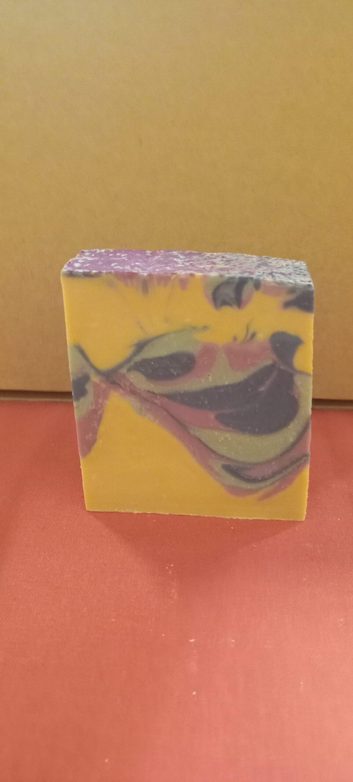 Un savon festif, irisé et pailleté grâce aux micas (minéraux naturels) utilisés! Ce savon, relaxant, est préparé à 100 % avec de l’huile d’olive, et des huiles de Tournesol et de Chanvre des HautesAlpes