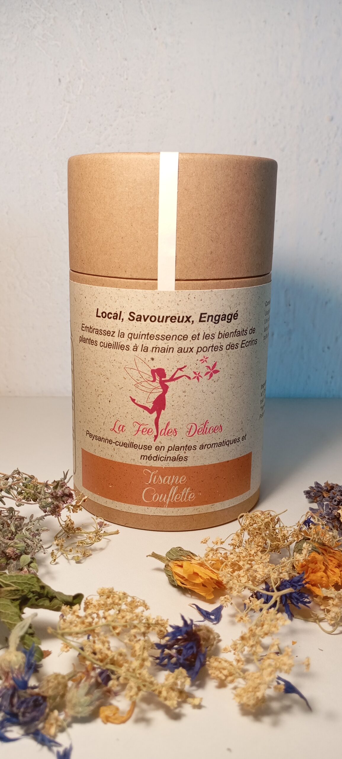 Local : Plantes des Hautes-Alpes, issues de mes cueillettes sauvages ou cultivées en bio, sur ma micro-ferme à 1400 m d’altitude.